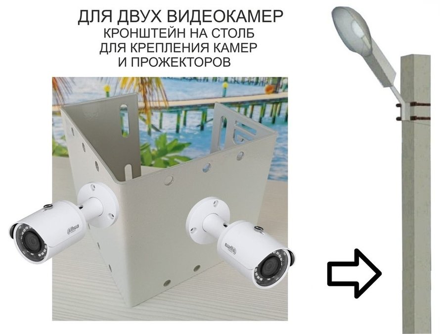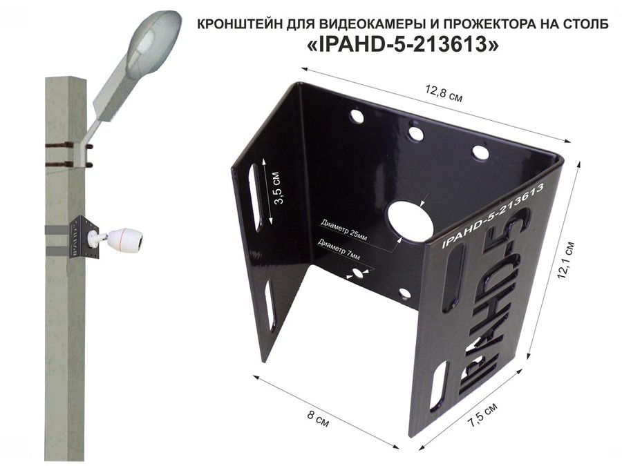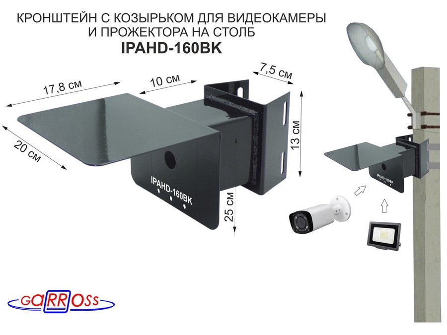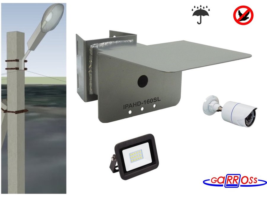 Кронштейн для видеокамеры и прожектора с коробкой и козырьком серебрис "IPAHD-160SL-138475" на столб