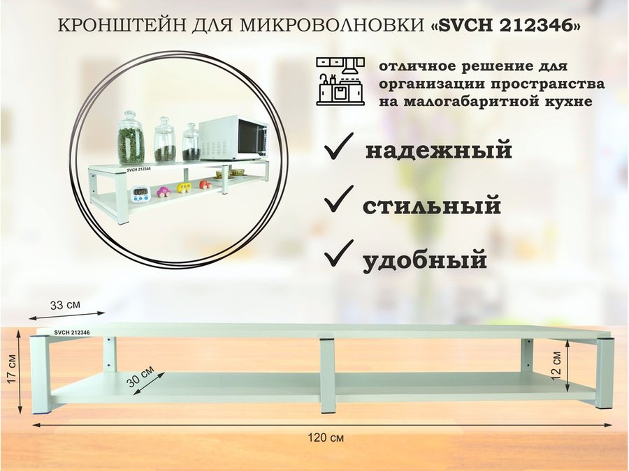 Кронштейн для микроволновки, 17см серый, 2 полки 30х120см "SVCH 212348" под микроволновую, салатовый