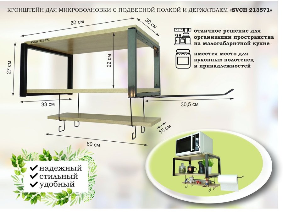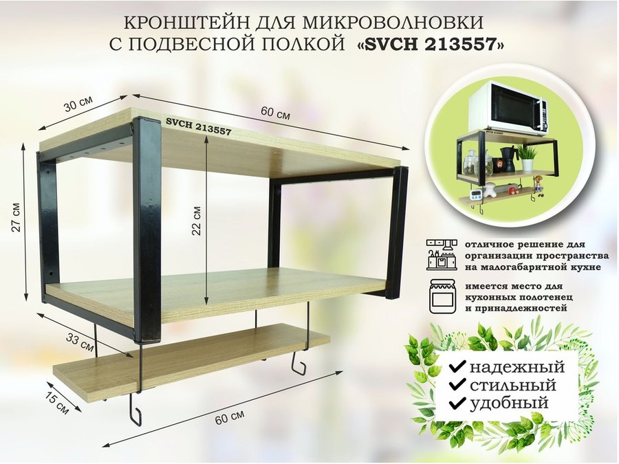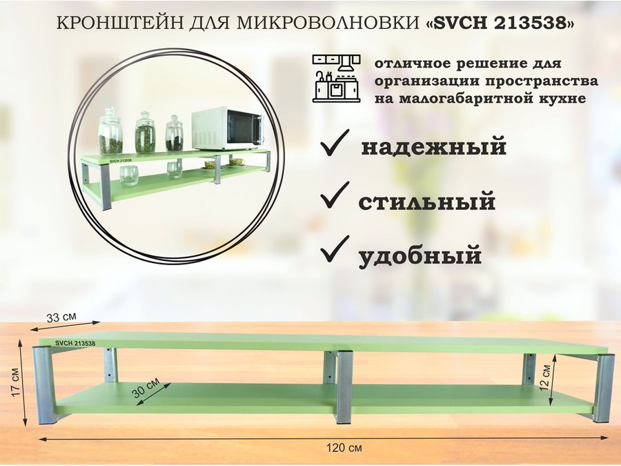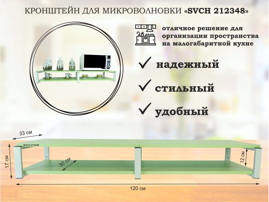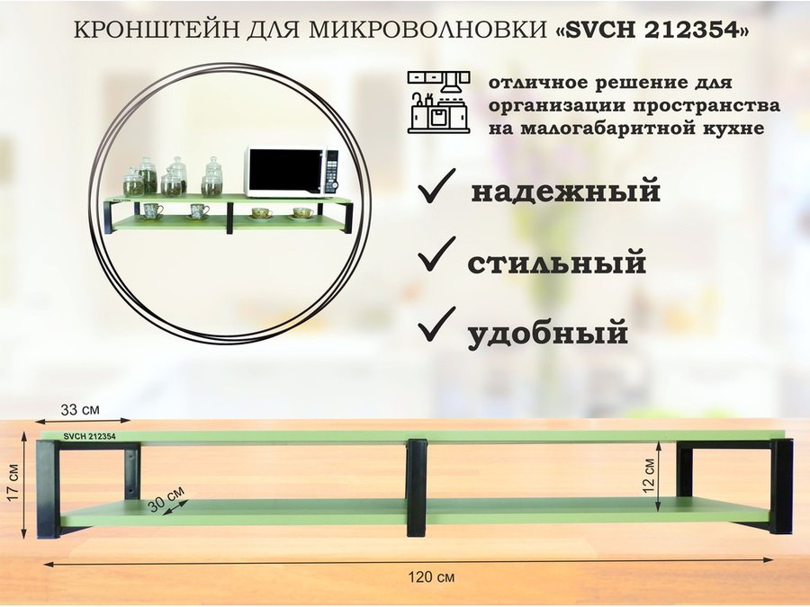 Кронштейн для микроволновки, 17см черный, 2 полки 30х120см "SVCH 212354" под микроволновую,салатовый
