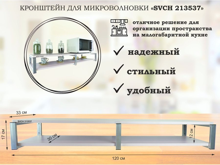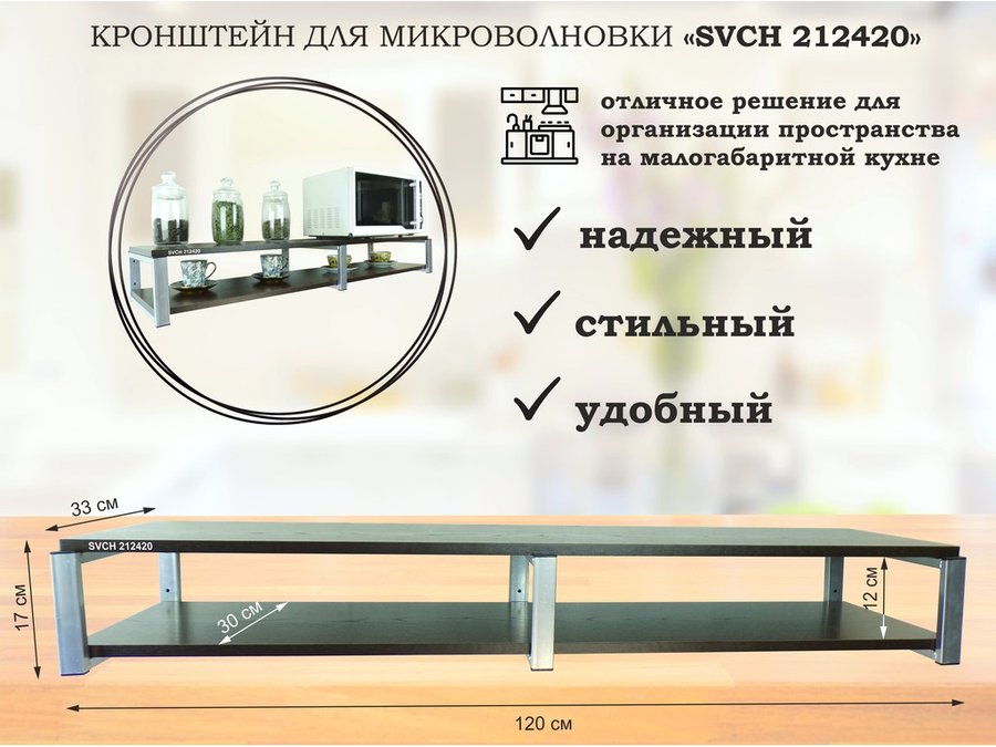 Кронштейн для микроволновки, 17см серый, 2 полки 30х120см "SVCH 212337" под микроволновую печь,венге