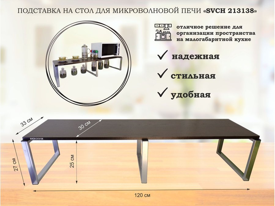 Подставка, полка на стол для микроволновой печи, высота 56см черный "SVCH 213439" полка 35х54, венге