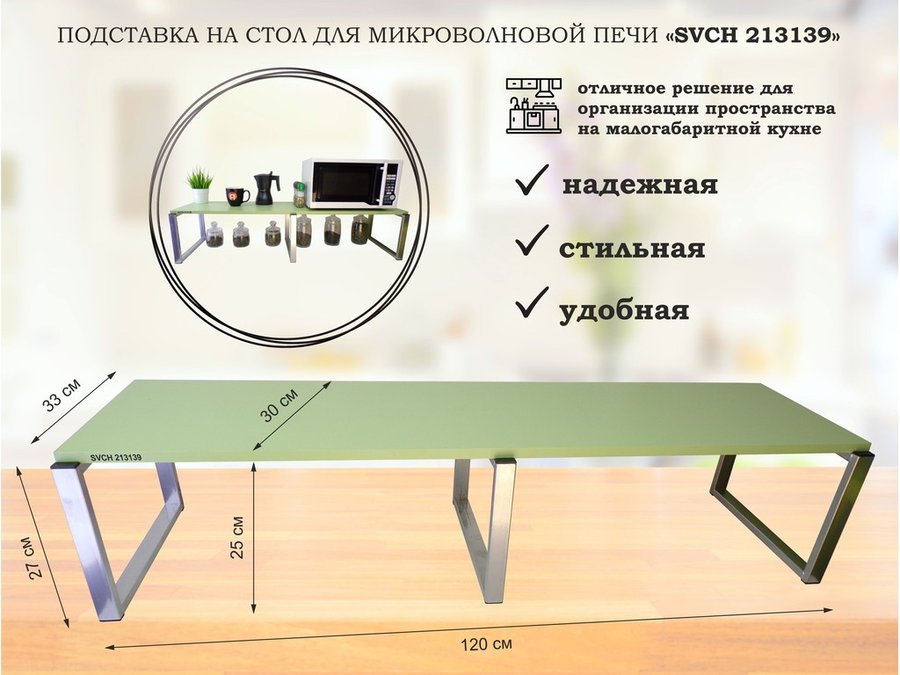 Подставка, полка на стол для микроволновой печи, высота 17см серебр "SVCH 213121" 30х40см, салатовый