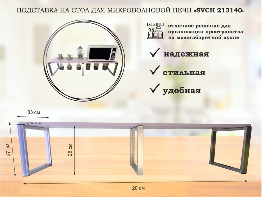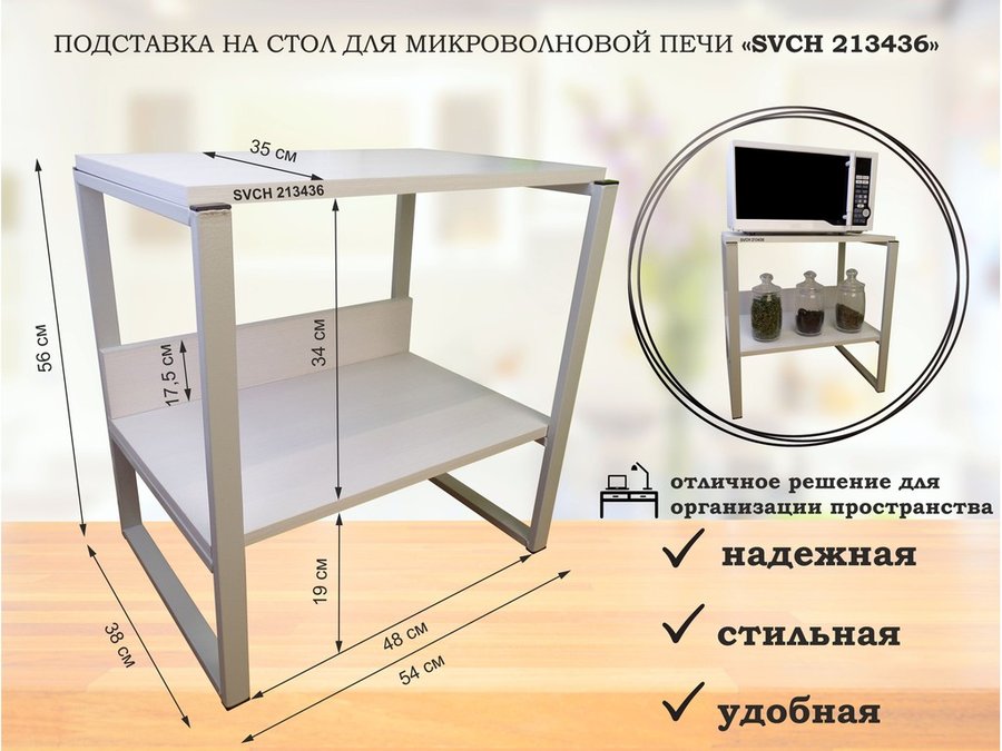 Подставка, полка на стол для микроволновой печи, высота 17см серебр "SVCH 213125" 30х40см, сосна выб