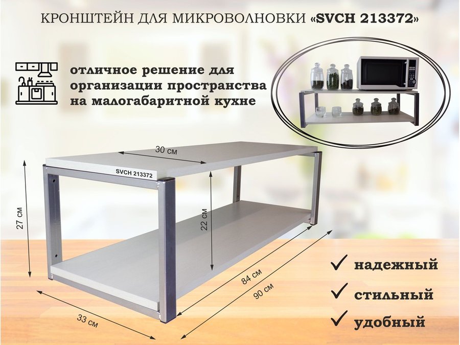 Кронштейн для микроволновки, 17см серый, 2 полки 30х120см "SVCH 212346" под микроволновую печь,сосна