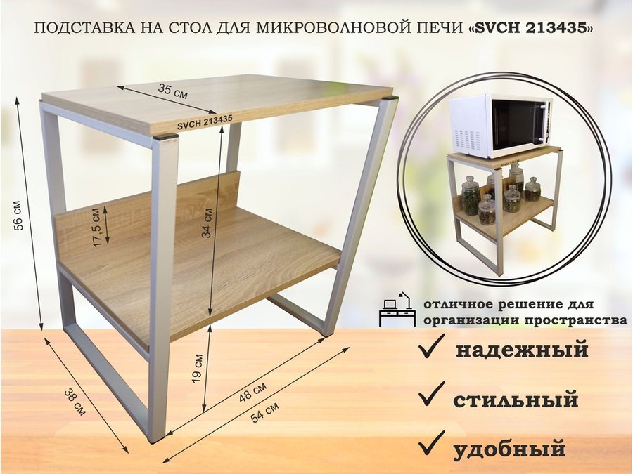 Подставка, полка на стол для микроволновой печи, высота 17см серебр "SVCH 213124" 30х40см, дуб соном