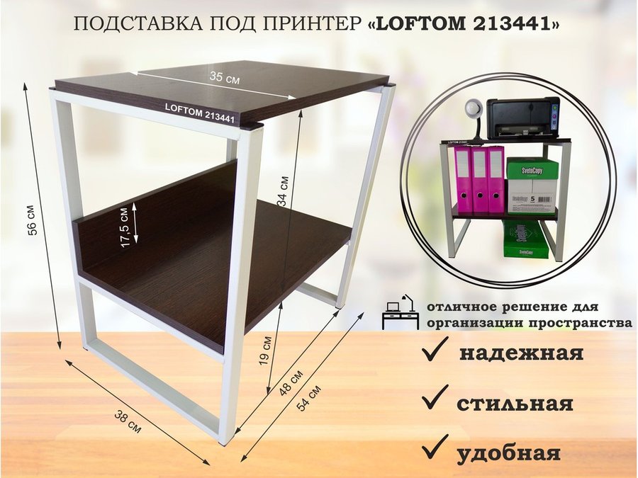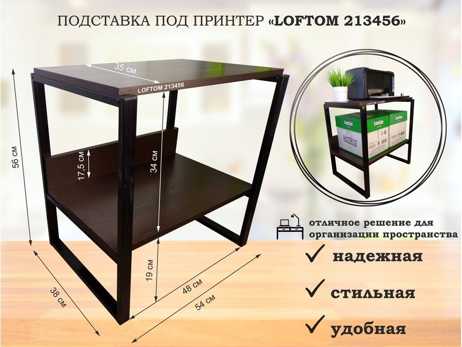 Подставка под принтер, столик для МФУ, полка для документов, 56см черный "LOFTOM 213456" 35х54,венге