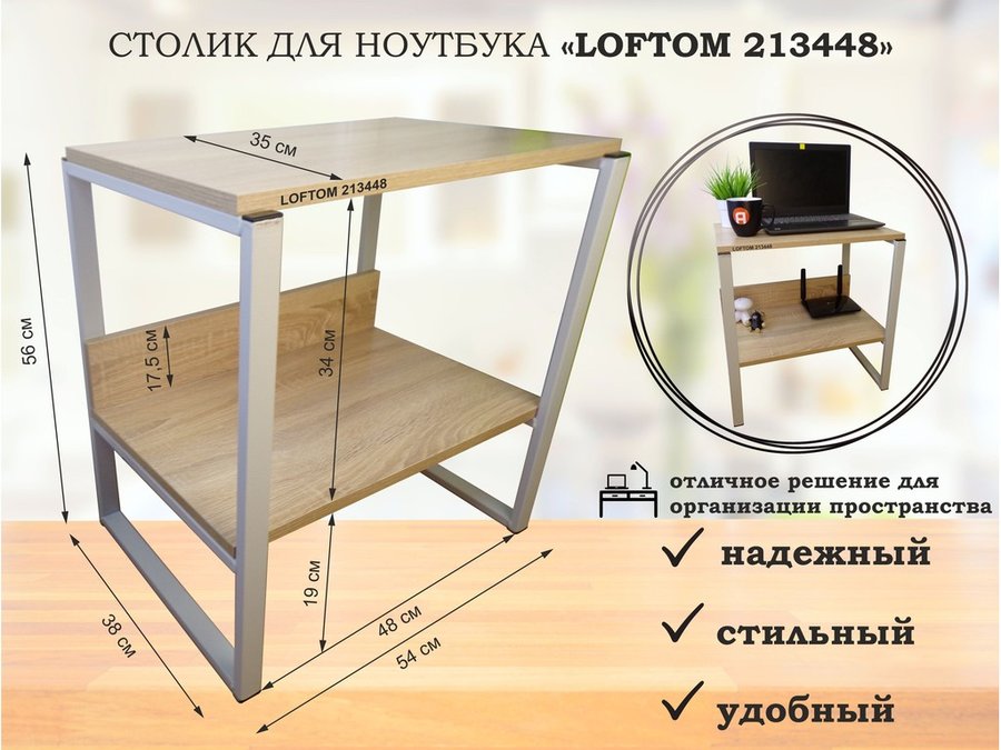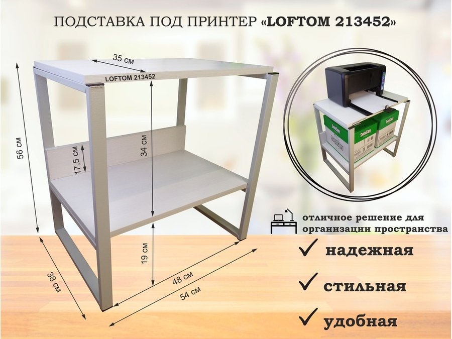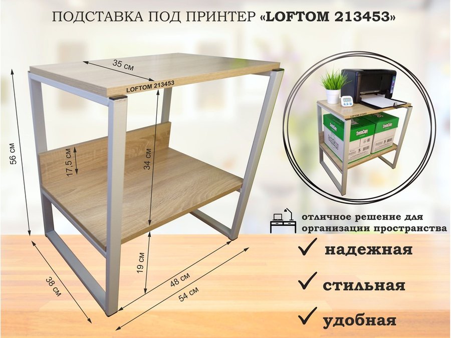Подставка под принтер, столик для МФУ, полка для документов, 56см серый "LOFTOM 213452" 35х54, сосна
