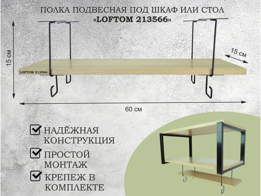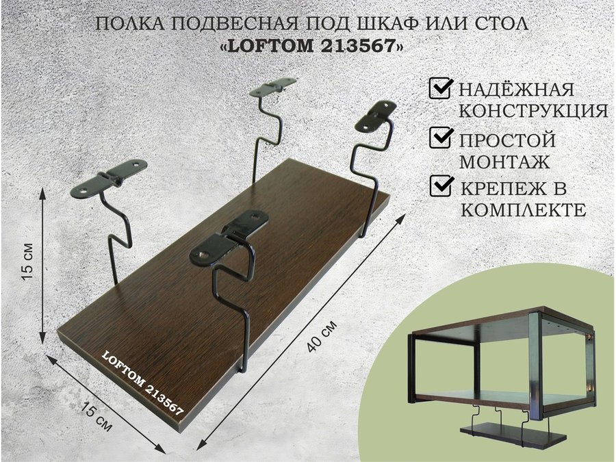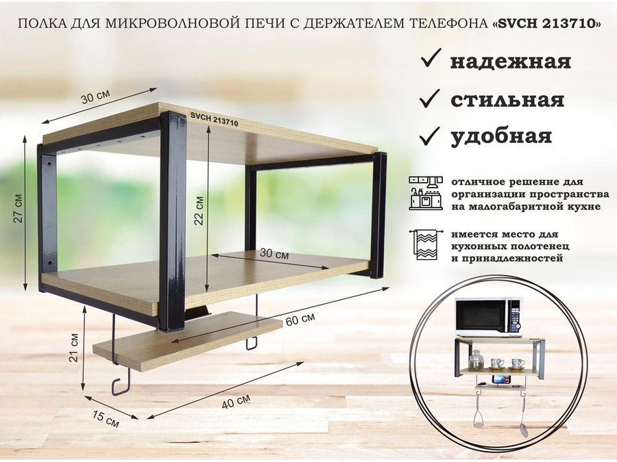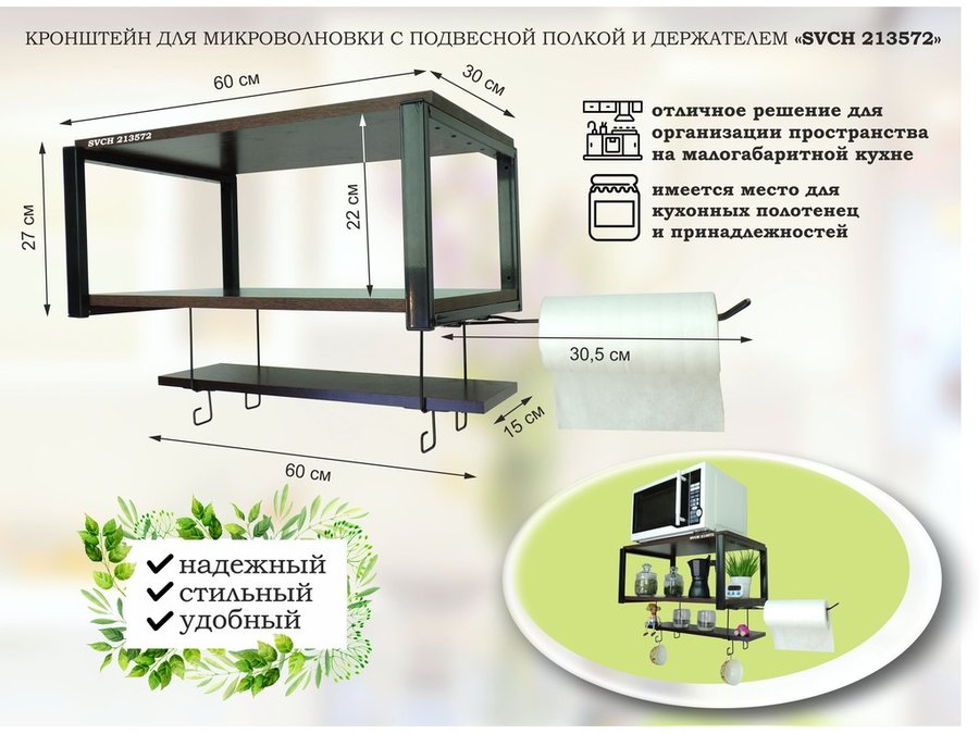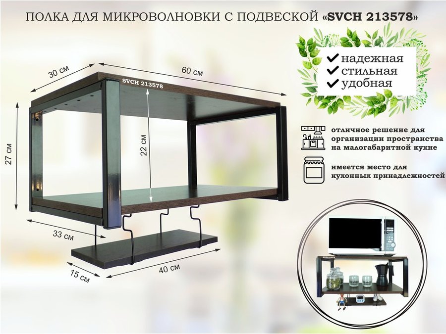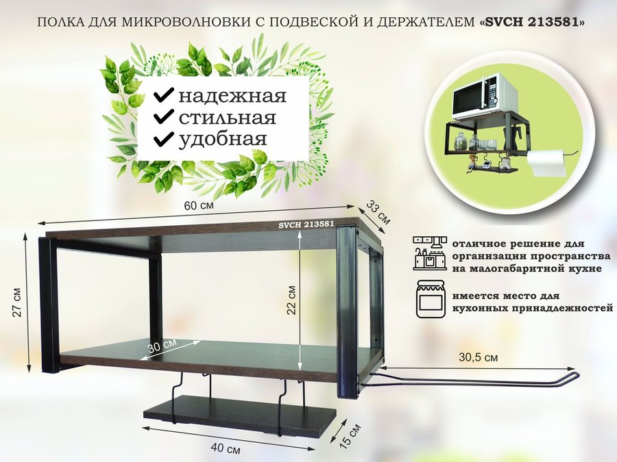 Полка для микроволновки 60x30см с подвеской 40x15см, 27см, черный "SVCH 213581" ,венге, с держателем