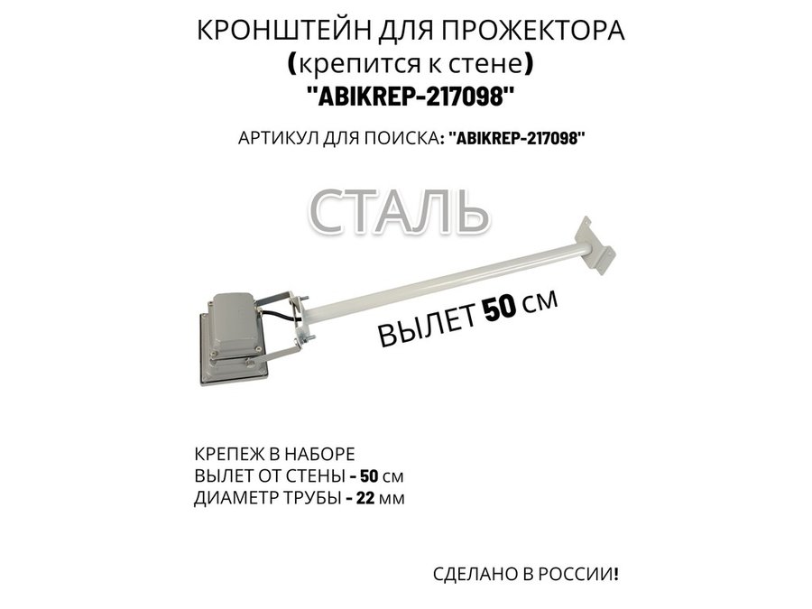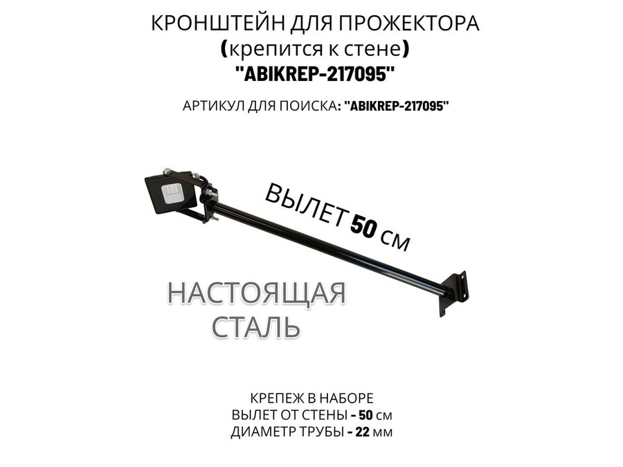 Кронштейн для прожектора к стене, диаметр 22мм, вылет 0,5 м "ABIKREP-217095" черный, основание 9х6см