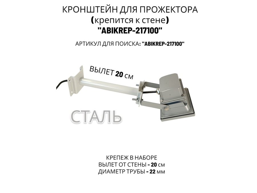 Кронштейн для прожектора к стене, диаметр 22мм, вылет 0,2 м "ABIKREP-217099" черный, основание 9х6см