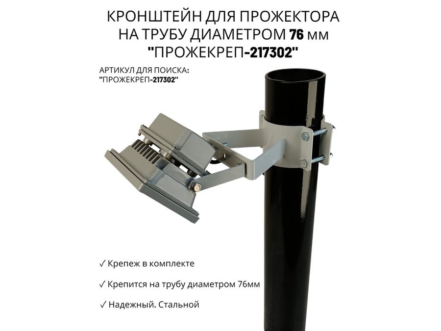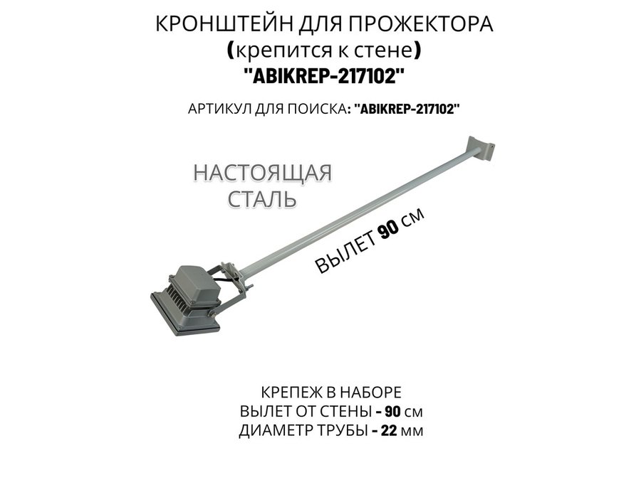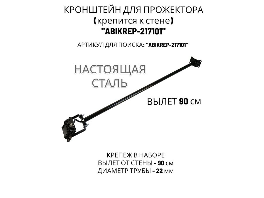 Кронштейн для прожектора к стене, диаметр 22мм, вылет 0,9 м "ABIKREP-217101" черный, основание 9х6см