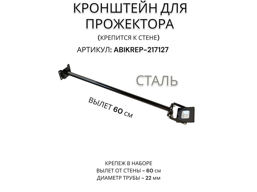 Кронштейн для прожектора к стене, диаметр 22мм, вылет 0,6 м "ABIKREP-217127" черный, основание 9х6см