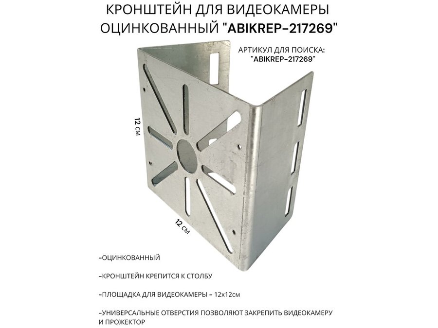 Кронштейн под коробку FOX для видеокамеры на столб оцинкованный "ABIKREP-217269" 12х12см,сталь 1,5мм