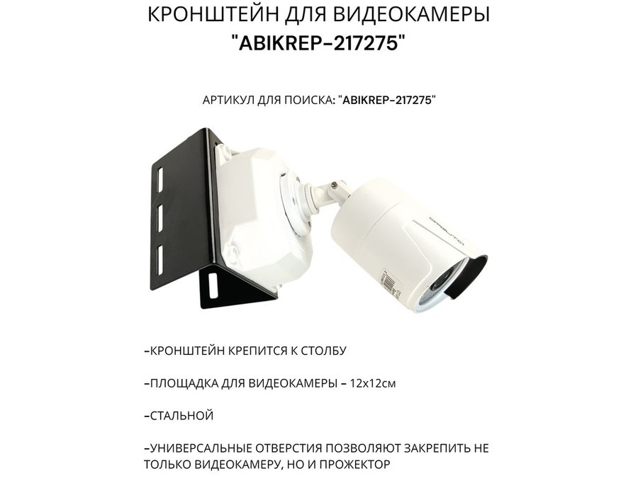 Кронштейн под коробку FOX для видеокамеры на столб, цвет черный "ABIKREP-217275" 12х12см, сталь 2 мм