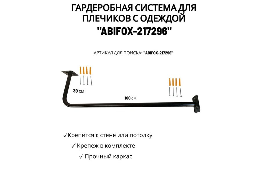 Гардеробная система для плечиков с одеждой, длина 100см, вылет 30см "ABIKFOX-217296" черный,диам32мм